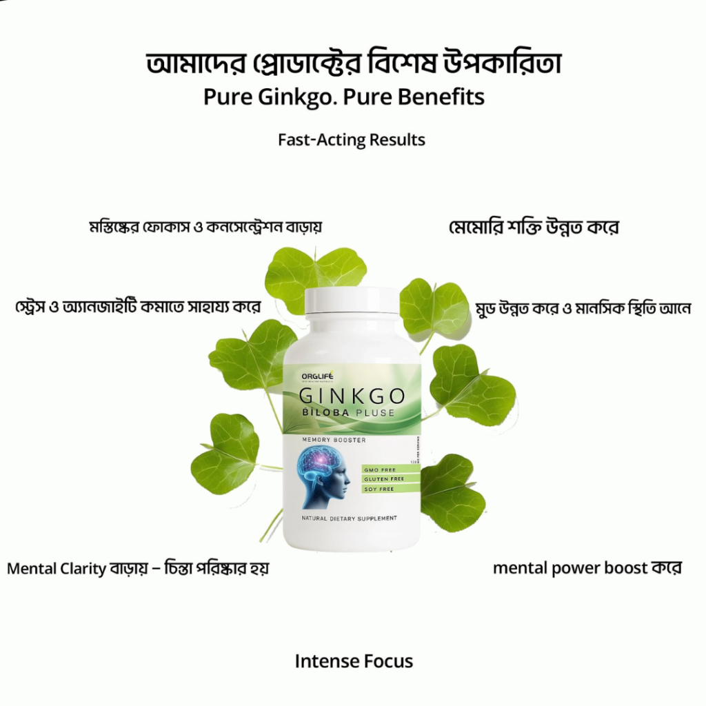 আমাদের Ginkgo Biloba সম্পূর্ণ প্রাকৃতিক উপায়ে তৈরি তাই এর কোনো রকম পার্শ্বপ্রতিক্রিয়া নেই।